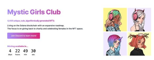 Mystic Girls Club, a women-led NFT project, is announcing its public mint on November 28 at 10 AM PT. Presale is 24 hours earlier at a 30% discount. The collection contains 4,444 uniquely designed and algorithmically generated NFTs that are built on the Solana blockchain. Mystic Girls Club’s (MGC) aim is to give holders governance over choosing charity, along with celebrating female representation in the NFT space.